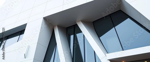 Obraz premium Clean lines, angular forms, geometric shapes define modern building facade,...
