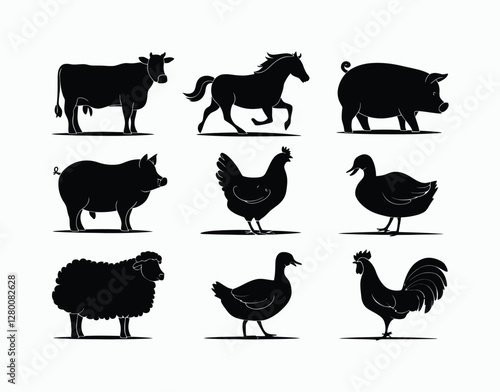 Fototapeta premium Clean Minimal Farm Animal Silhouettes