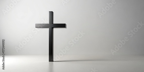 Naklejka premium Clean, minimalist design: a black cross on white, ideal for religious...