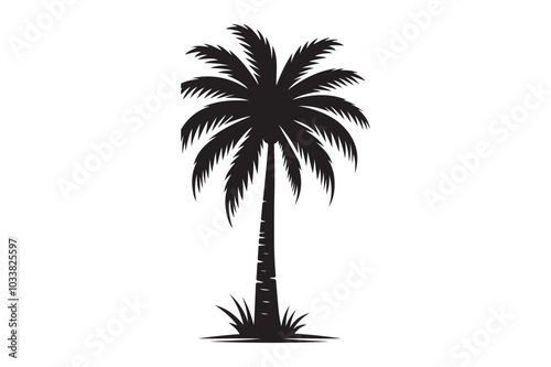 © Picture Paradise, Obraz premium Clean Palm Tree Vector Graphic on Plain White Background.