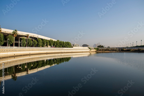 Naklejka premium Clean pond in early morning hour.
