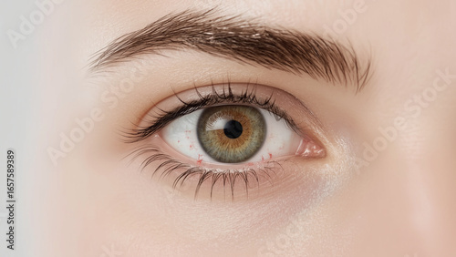 © Sai, Obraz premium clean, realistic medical illustration of a human eye showing the three layers of tear film (lipid, aqueous, mucin), labeled and sectioned, white background, professional medical textbook style.