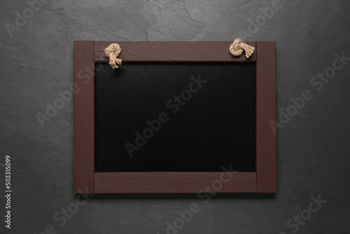 © New Africa, Obraz premium Clean small black chalkboard on dark table, top view