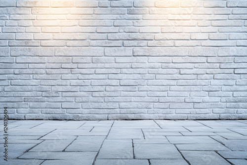 Fototapeta premium clean, textured gray urban brick wall with soft lighting creates modern backdrop. smooth floor complements wall, enhancing minimalist aesthetic
