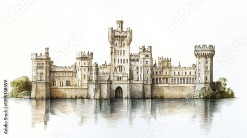 © Athirat, Fototapeta premium Clean white background featuring artistic representations of Leeds Castle Mansion architecture, capturing its castle design