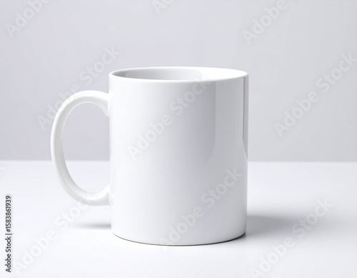 Fototapeta premium Clean white ceramic mug isolated on a minimalist light background, perfect...