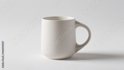 Fototapeta premium Clean white ceramic mug with smooth contours on a light gray background