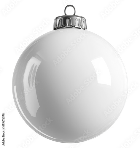 Obraz premium Clean white Christmas ball ornament with a silver cap isolated on a transparent background