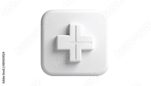 © Kang, Fototapeta premium Clean White 3d Plus Symbol Icon with Rounded Corners on transparent background