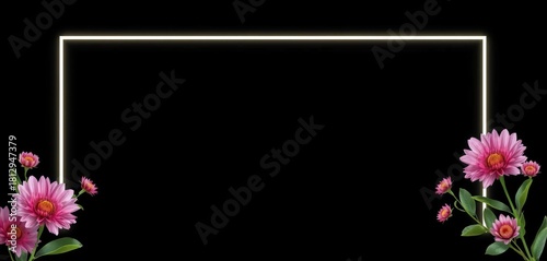 © Pimchada, Obraz premium Clean white line frame border on black background, clean, composition