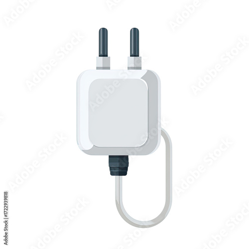© Nikola Step, Fototapeta premium Clean White Power Charger Plug with Short Connected Cable