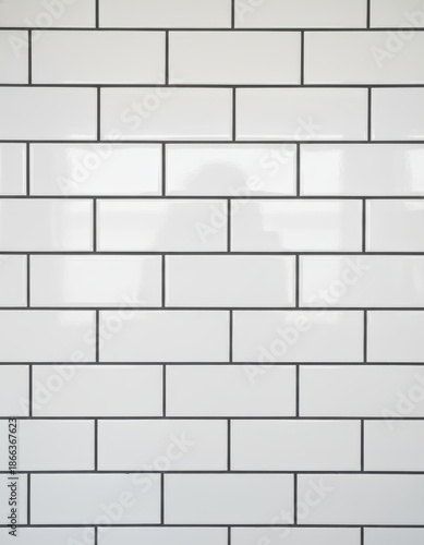 © Gustav, Fototapeta premium Clean white tiled surface with dark grout lines displaying a modern design element