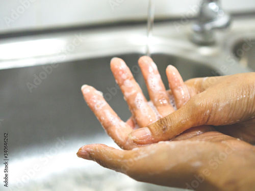 © Kenstocker, Fototapeta premium cleaning hand by soap for prevent virus, prevent coronavirus or covid-19 concept.