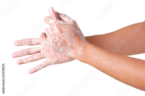 © aekkorn, Fototapeta premium Cleaning Hands. Washing hands. ISOLATED ON WHITE BACKGROUND.