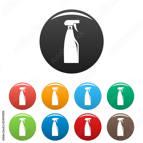 Fototapeta premium Cleaning spray icons set 9 color vector isolated on white for any design
