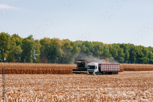 © levenko, Fototapeta premium Cleaning the kukuruza on a warm autumn day