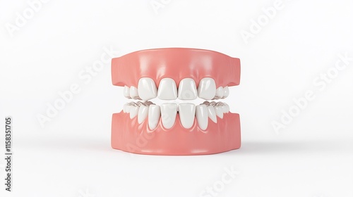 © heinng, Obraz premium Cleanly Rendered 3D Model: Perfectly Aligned Teeth Mockup. AI Generated