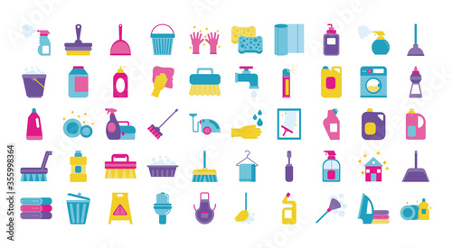 © Gstudio, Fototapeta premium cleansing and desinfecting set icons