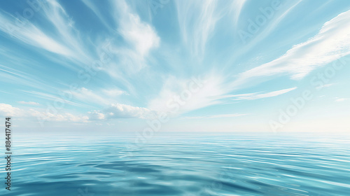 Obraz premium Clear blue ocean with reflections of fluffy white clouds in the sky.