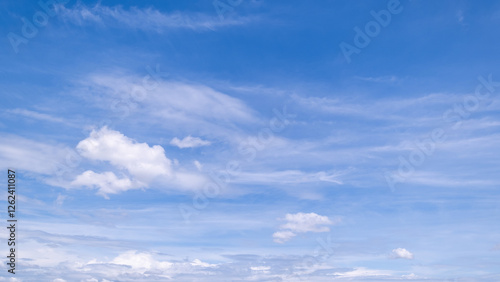 Fototapeta premium clear blue sky background,clouds with background, Blue sky background with tiny clouds. White fluffy clouds in the blue sky.