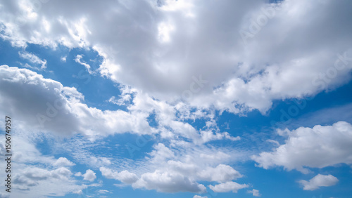 Fototapeta premium clear blue sky background,clouds with background, Blue sky background with tiny clouds. White fluffy clouds in the blue sky.