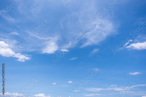 Fototapeta premium clear blue sky background,clouds with background, Blue sky background with tiny clouds. White fluffy clouds in the blue sky.