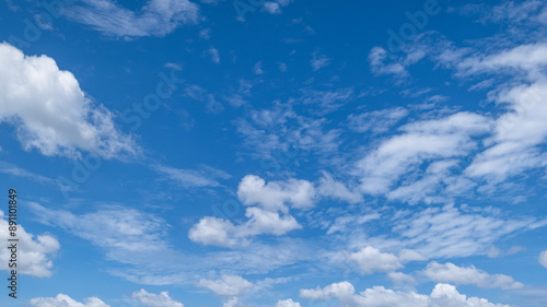Fototapeta premium clear blue sky background,clouds with background, Blue sky background with tiny clouds. White fluffy clouds in the blue sky.