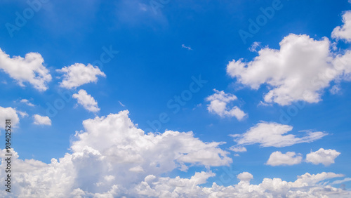 © pinglabel, Fototapeta premium clear blue sky background,clouds with background, Blue sky background with tiny clouds. White fluffy clouds in the blue sky.