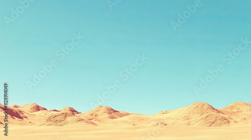 Fototapeta premium Clear Blue Sky Over Barren Desert Landscape with Soft Sand Dunes Under...