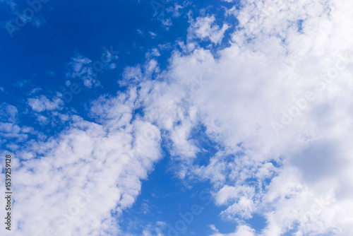 Obraz premium Clear blue sky, soft white clouds, sunny day, peaceful background, calm soothing environment