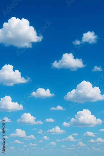 Obraz premium Clear blue sky with fluffy cumulus clouds