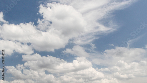 Obraz premium Clear blue sky with fluffy white clouds