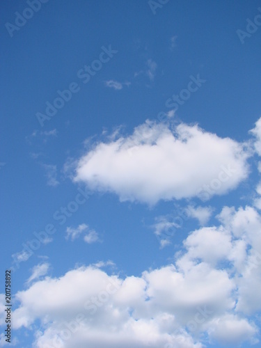 © MichiruKayo, Obraz premium clear blue sky with plain white cloud with space for text background.