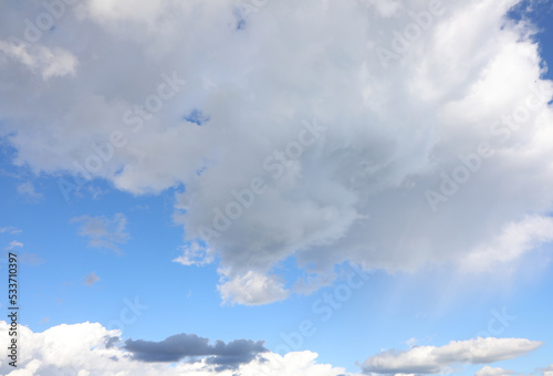 © ChiccoDodiFC, Naklejka premium clear blue sky with white clouds and some black clouds