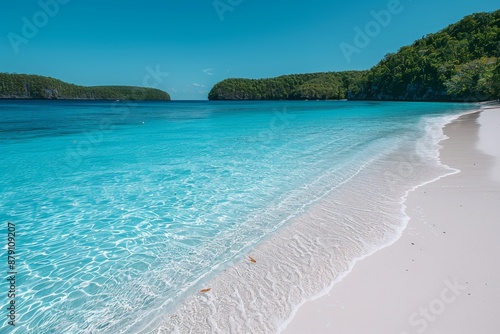 Naklejka premium Clear Blue Water and Sandy Beach in a Tropical Island Lagoon