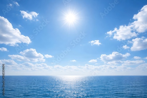 © TheWaterMeloonProjec, Obraz premium Clear daylight horizon with white clouds and bright sunshine