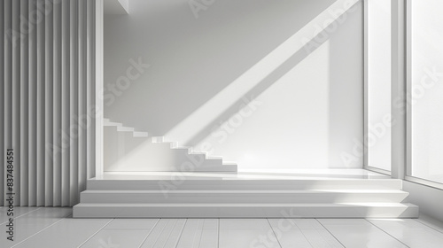 Fototapeta premium Clear Geometric Glass Podium with Minimalist Staircase