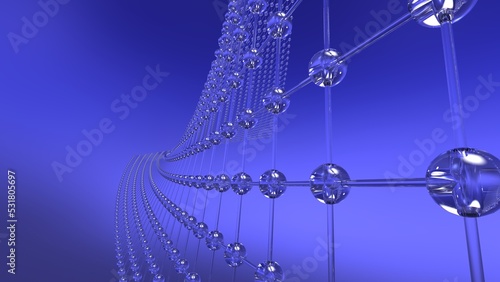 © DRN Studio, Obraz premium Clear Glass Mathematical Geometric Abstract Twist Plane Dots-Line Grid under Blue-Black Spot Lighting Background. Conceptual 3D CG of technological innovations, strategies and revolutions.