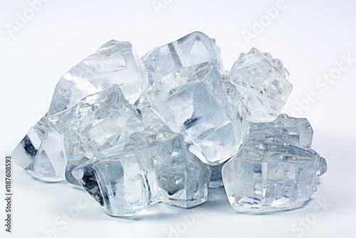 Obraz premium Clear ice cubes arranged in a pile for beverage cooling and culinary use at...