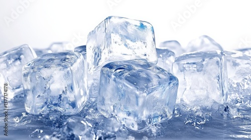© jianhua, Obraz premium Clear Ice Cubes Close-up