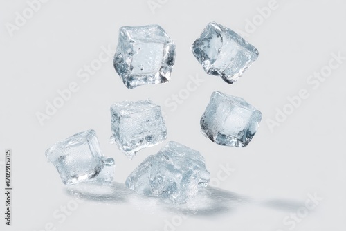 Obraz premium Clear ice cubes levitating