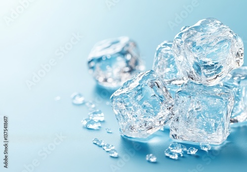 Obraz premium Clear Ice Cubes on a Light Blue Background