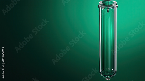 Fototapeta premium clear laboratory test tube suspended against green background, showcasing its...