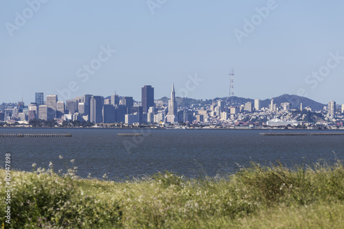 Fototapeta premium Clear Morning Meadow View Across San Francisco Bay