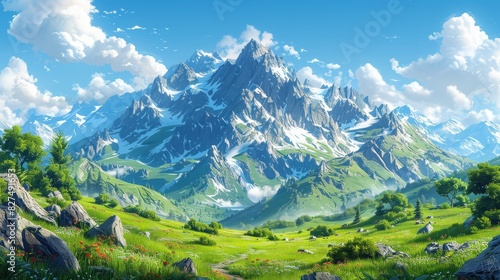 Naklejka premium Clear mountain view on a bright summer day with sky above for adventure-themed
