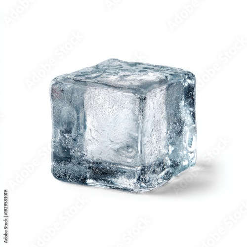 Obraz premium Clear, multifaceted, melting ice cube with sharp edges and a blurred shadow