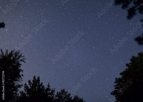 © Yevgen Belich, Naklejka premium Clear night sky full of stars framed by trees. Lithuania.