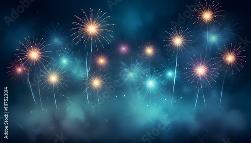 © Fazila, Naklejka premium Clear Plain Shiny Warm Soft Vintage Bokeh Cloudy Wave Like Geometric Blue Background or Texture
