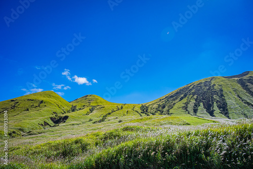 © 模公 黒川, Fototapeta premium 快晴の阿蘇くじゅう国立公園の絶景 Clear Sky Landscape of Aso Kuju National Park