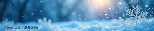 © Jameo, Naklejka premium Clear spot on frosted window reveals icy blue winter scene, winter morning, snowflake